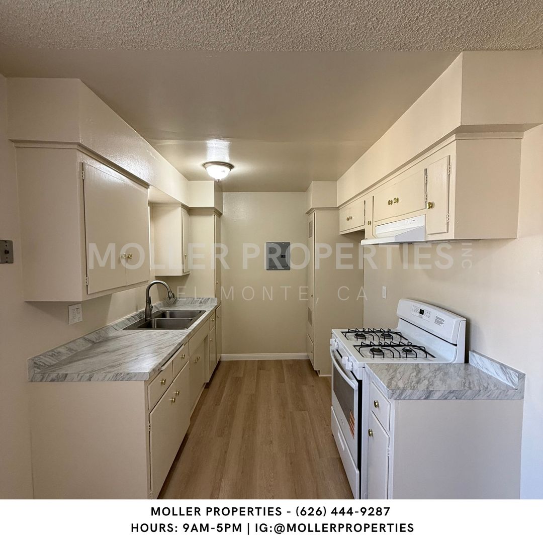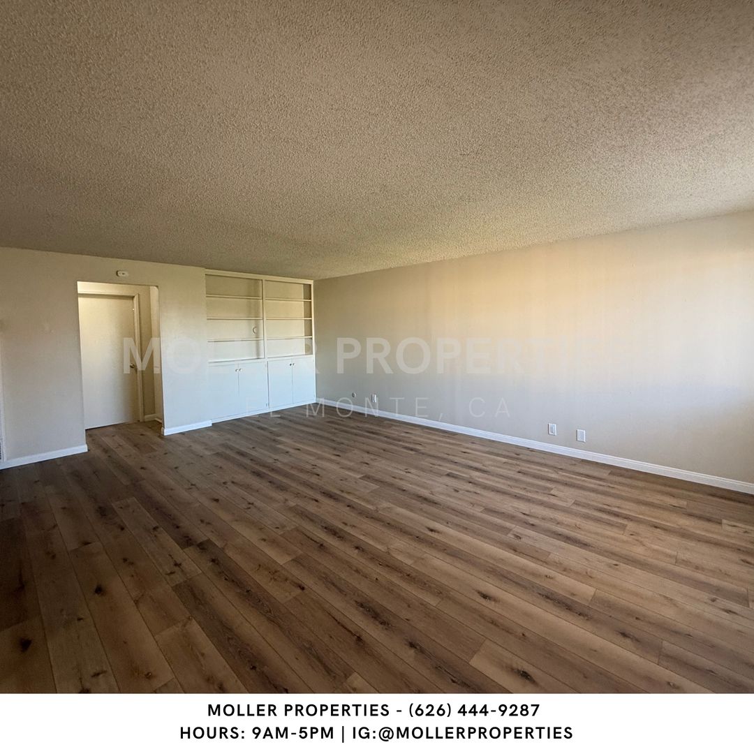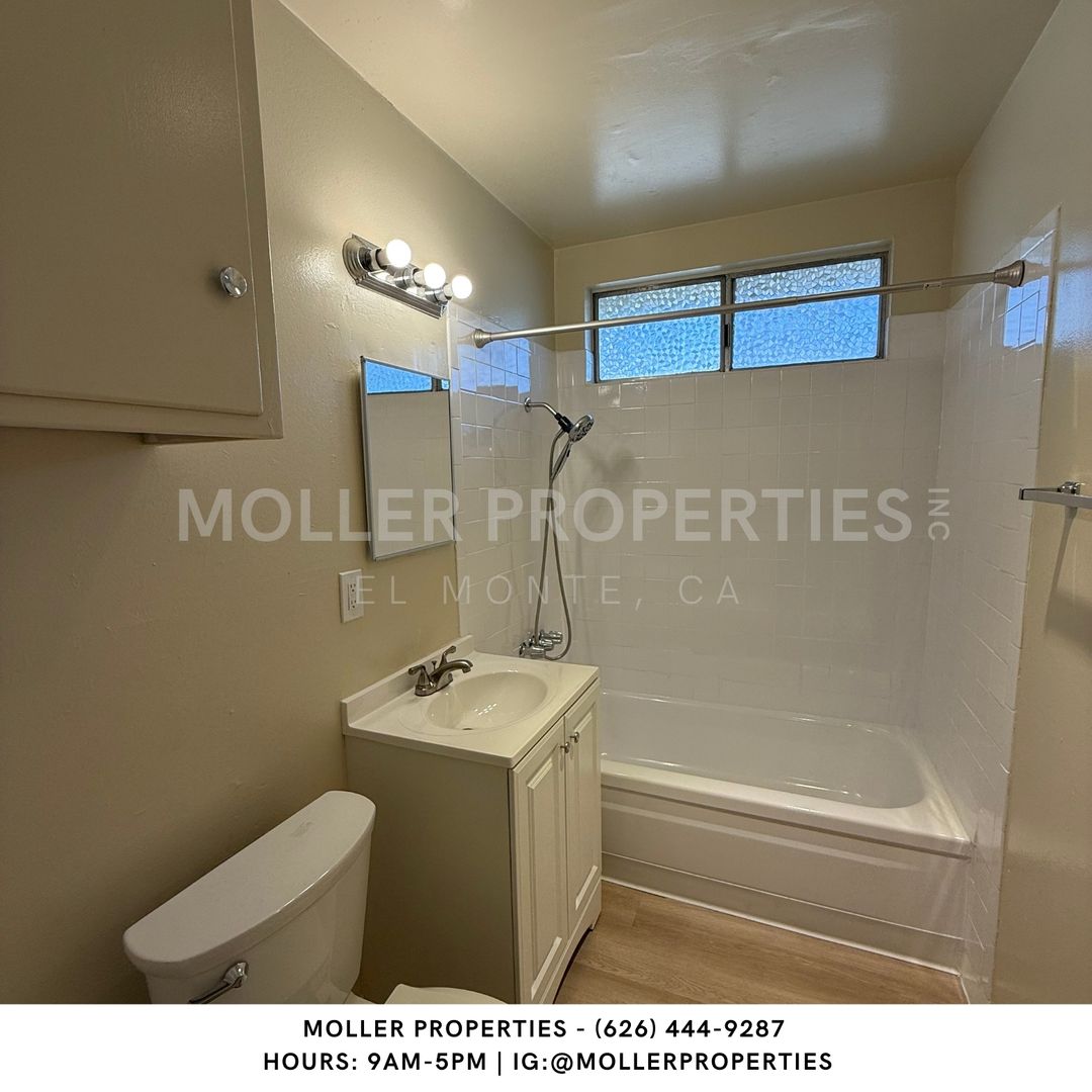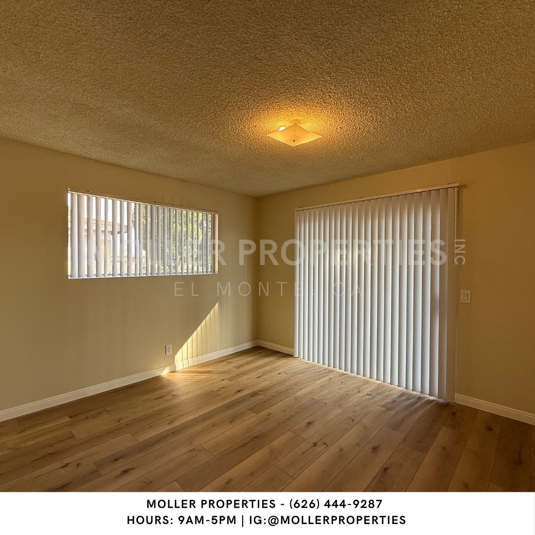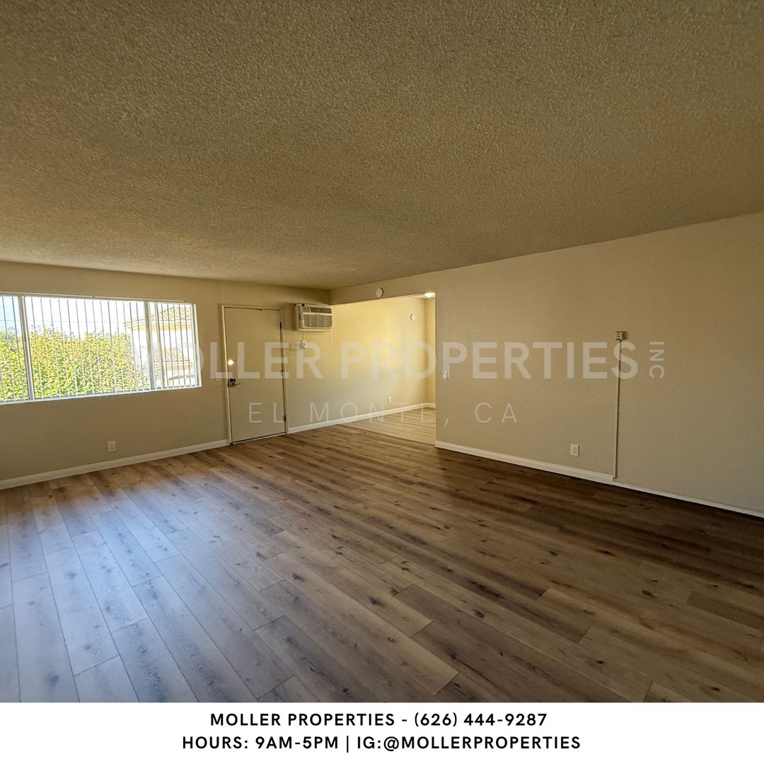 El Monte - 2 bedroom/1 bathroom apartment for rent, New flooring, wall Ac in Living room, Water and Trash paid by owner, near schools and transportation, carport parking available, on-site laundry facility, On-site manager.