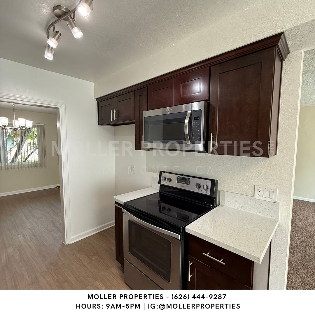 Alhambra - Beautiful 2 bedroom / 2 bathroom apartment for rent, Wall heating, updated fixtures, appliances, beautiful New flooring and carpet in unit. Water and Trash paid by owner, near schools and transportation, carport parking and on-site laundry facility.